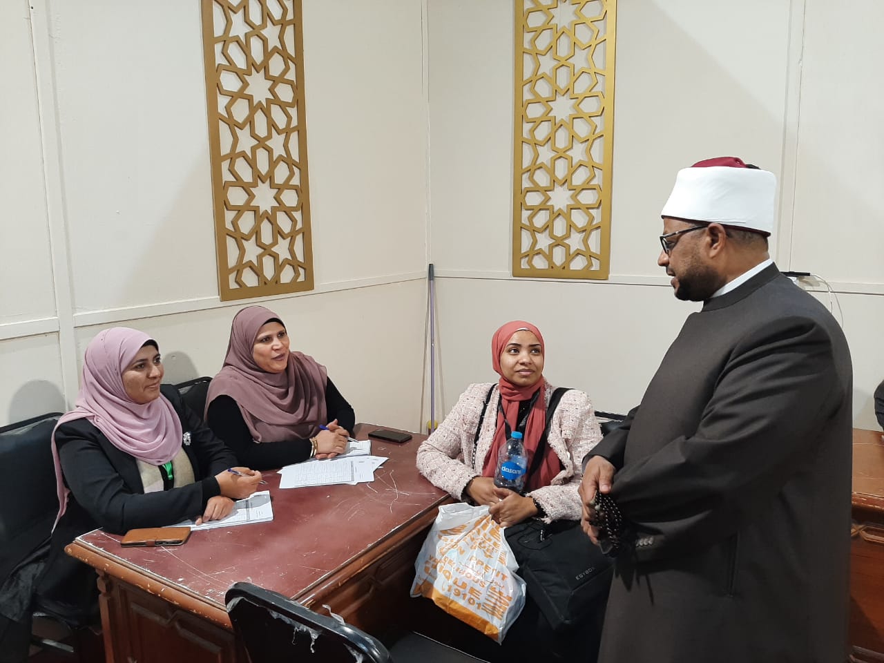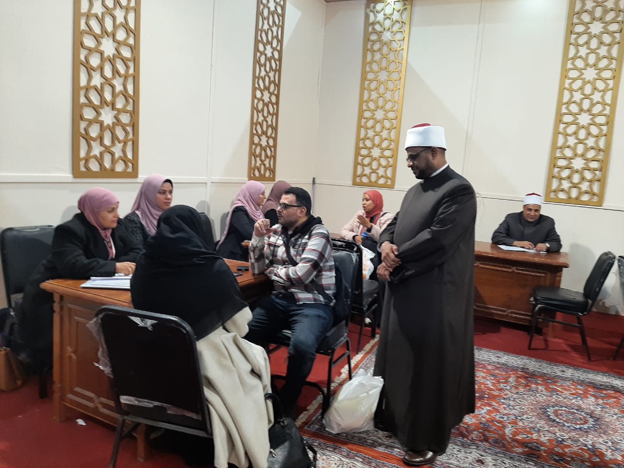 تفقد الأمين العام لمجمع البحوث الإسلامية الدكتور محمد الجندي، سير العمل داخل ركن الفتوى بجناح الأزهر بمعرض الكتاب، والذي يشهد إقبالًا كثيفًا من زوار المعرض، خاصة من الشباب والفتيات، وذلك لطرح استفساراتهم وأسئلتهم على وعاظ الأزهر وواعظاته المتواجدين داخل الركن طوال فترة المعرض للحصول على أجوبة شافية تعكس المنهج الأزهري الوسطي المعتدل.