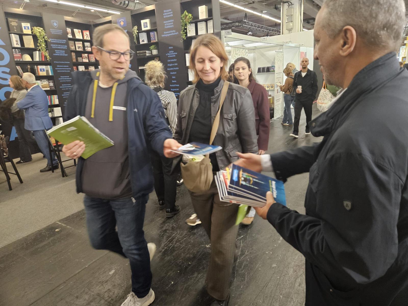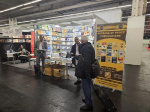 يواصل الحاج محمد الأمين، أمين مؤسسة رسالة السلام في إسبانيا، بالتعاون مع مسؤولي المؤسسة في ألمانيا، توزيع إصدارات مؤسسة رسالة السلام التي تتضمن فكر ورؤى المفكر العربي الكبير الأستاذ علي محمد الشرفاء الحمادي، وذلك ضمن فعاليات معرض فرانكفورت الدولي للكتاب بألمانيا.