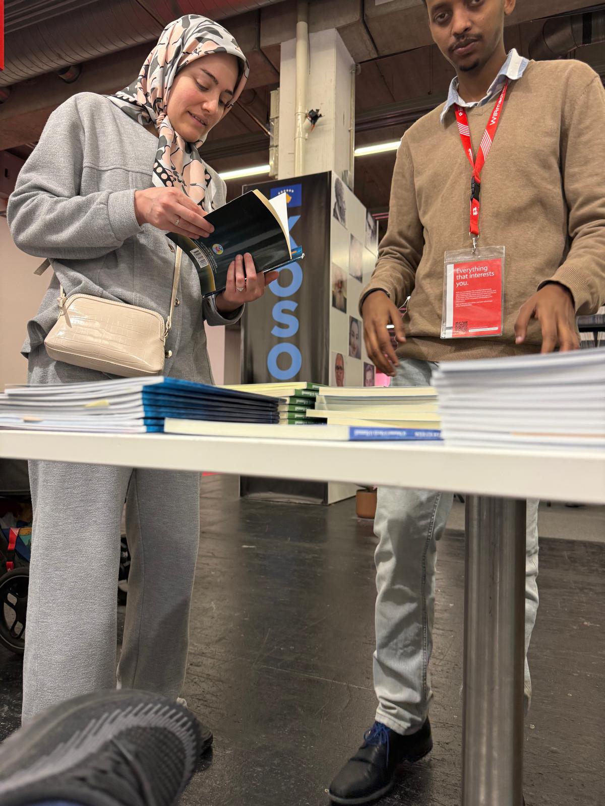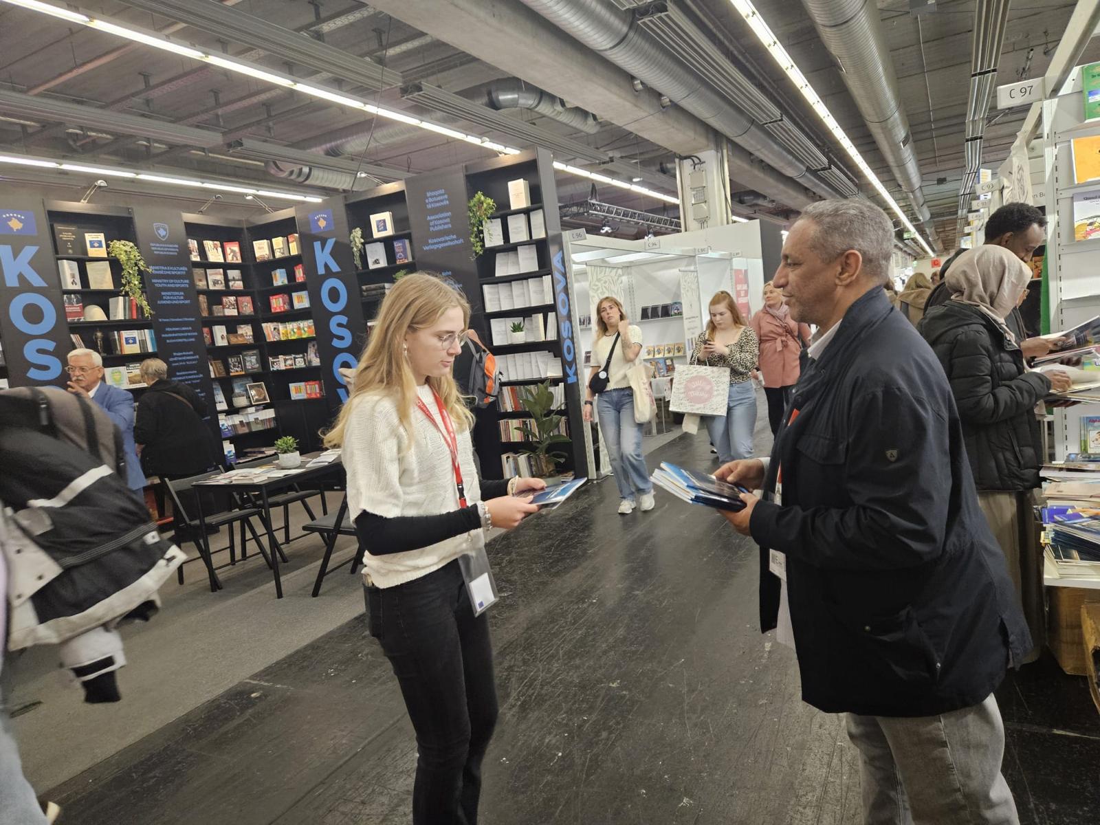 ويشهد جناح المؤسسة إقبالًا واسعًا من زوار المعرض الذين أبدوا اهتمامًا خاصًا بما يقدمه المفكر علي محمد الشرفاء من دعوات لنشر قيم السلام الإنساني والتسامح وتصحيح المفاهيم الدينية المغلوطة.