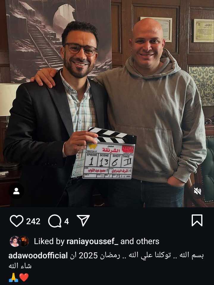 ونشر أحمد داود صورة له رفقة المخرج محمود عبد التواب عبر حسابه الرسمي بموقع تبادل الصور والفيديوهات انستجرام، وعلقت عليه، قائلة: بسم الله توكلنا على الله.. رمضان 2025 باذن الله.