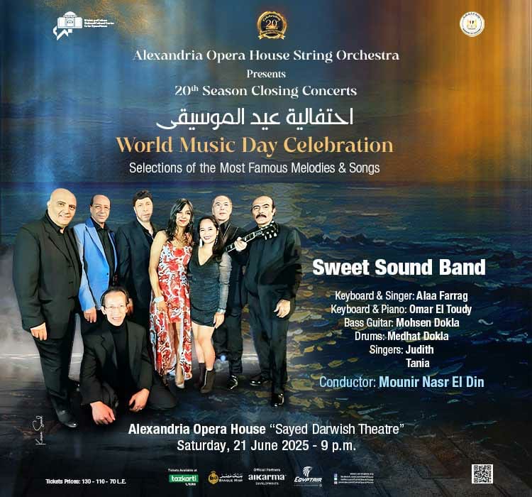 تقيم دار الأوبرا المصرية برئاسة الدكتور علاء عبد السلام، حفلًا لأوركسترا وتريات أوبرا الإسكندرية، بمناسبة عيد الموسيقى العالمى، حيث يختتم به موسمه الفنى العشرين ، ويستضيف خلاله سويت ساوند باند ويقوده عازف الفيولينة الدكتور منير نصر الدين، وذلك فى التاسعة مساء السبت ٢١ يونيو على مسرح سيد درويش “أوبرا الإسكندرية”.
