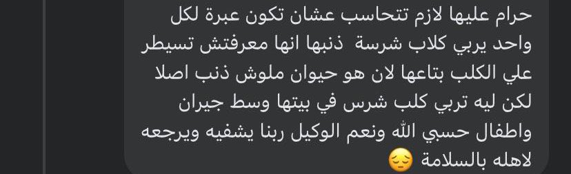 وأردفت “هند” تفاصيل الواقعة: “الكلب حرفياً قام بإفتراسه بدون مبالغة، عض في الذراع و الفخذ وأماكن متفرقه من الجسم نتج عنها قطع نافذ في الأوتار و الأعصاب، و فجأه المدخل كله بقى دم ، طبعا ابنه واقف و شايف ده كله بيحصل لأبوه، وبالعناية الإلهية فقط استطاعوا ان يفلتوه من بين أسنانه و توجهوا به لمستشفى “دار الفؤاد” بحكم انها أقرب مستشفي كبير لهم”.