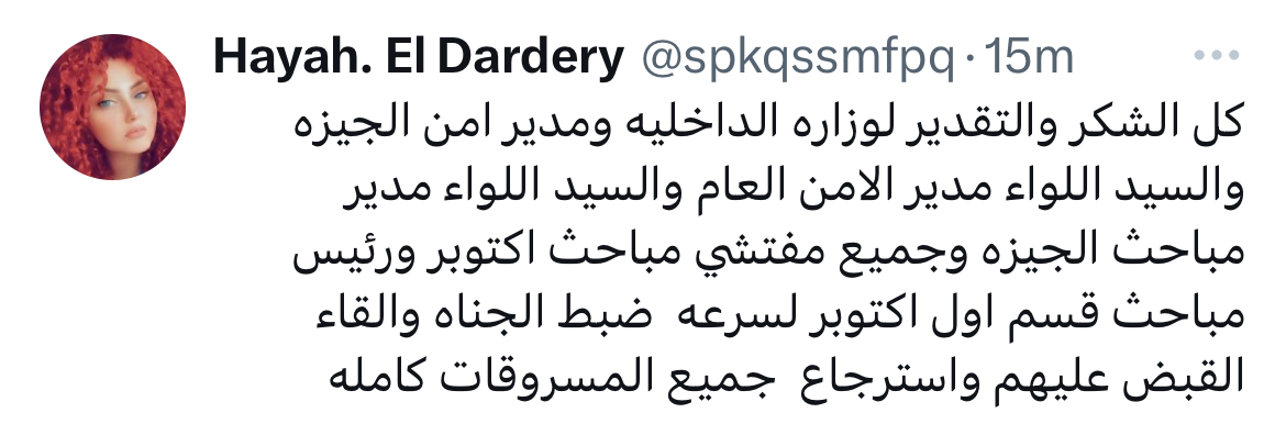 كما وجهت زوجته الإعلامية حياة الدرديري قائلة: “كل الشكر والتقدير لوزاره الداخلية ومدير امن الجيزة والسيد اللواء مدير الامن العاموالسيد اللواء مدير مباحث الجيزة وجميع مفتشي مباحث اكتوبر ورئيس مباحث قسم اول اكتوبر لسرعه ضبط الجناه والقاء القبض عليهم واسترجاع جميع المسروقات كامله”.