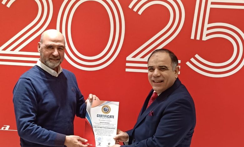 الدكتور حسان نصر الله يكرم وفد مؤسسة رسالة السلام العالمية في ختام المؤتمر الدولي «الرياضة طريق إلى السلام بين الشعوب»