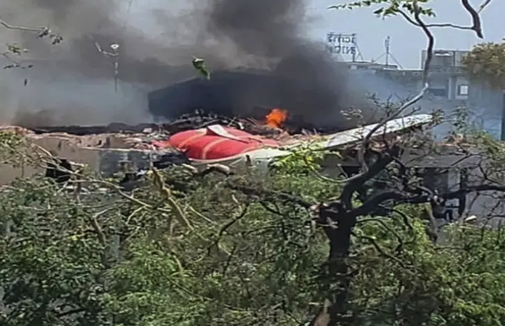 وسقطت طائرة ركاب التابعة لشركة الخطوط الجوية الهندية (إير إنديا) فوق مبنى سكني مخصص للأطباء في منطقة مكتظة بالسكان قرب مطار مدينة أحمد آباد، غربي البلاد.