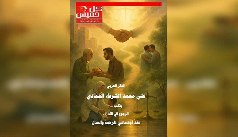 صدر اليوم العدد الثالث والتسعون من مجلة «كل خميس»، حاملاً في طياته محورًا فكريًا عميقًا يتمثل في مقال المفكر العربي الأستاذ علي محمد الشرفاء الحمادي بعنوان «الرجوع إلى الله: عقد اجتماعي للرحمة والعدل»، الذي يقدّم فيه رؤية جديدة تعيد الإيمان إلى جوهره العملي، وتدعو إلى تجسيد القيم القرآنية في سلوك الإنسان اليومي بما يحقق العدالة والتكافل واحترام الحرية والكرامة الإنسانية.