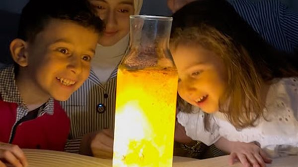 انتشرت خلال الأيام الماضية تجارب مصوّرة تظهر كوبًا زجاجيًا يحتوي على ماء ممزوج بالقليل من الكركم أو مسحوق فيتامين B2، ثم يتم تسليط ضوء فلاش الهاتف أو مصباح UV عليه داخل غرفة مظلمة، النتيجة؟ توهّج سحري بالأصفر الذهبي أو الأخضر الفسفوري يملأ الكوب ويلفت الأنظار، خاصة لدى الأطفال، الذين تفاعلوا مع التجربة بدهشة وفضول.