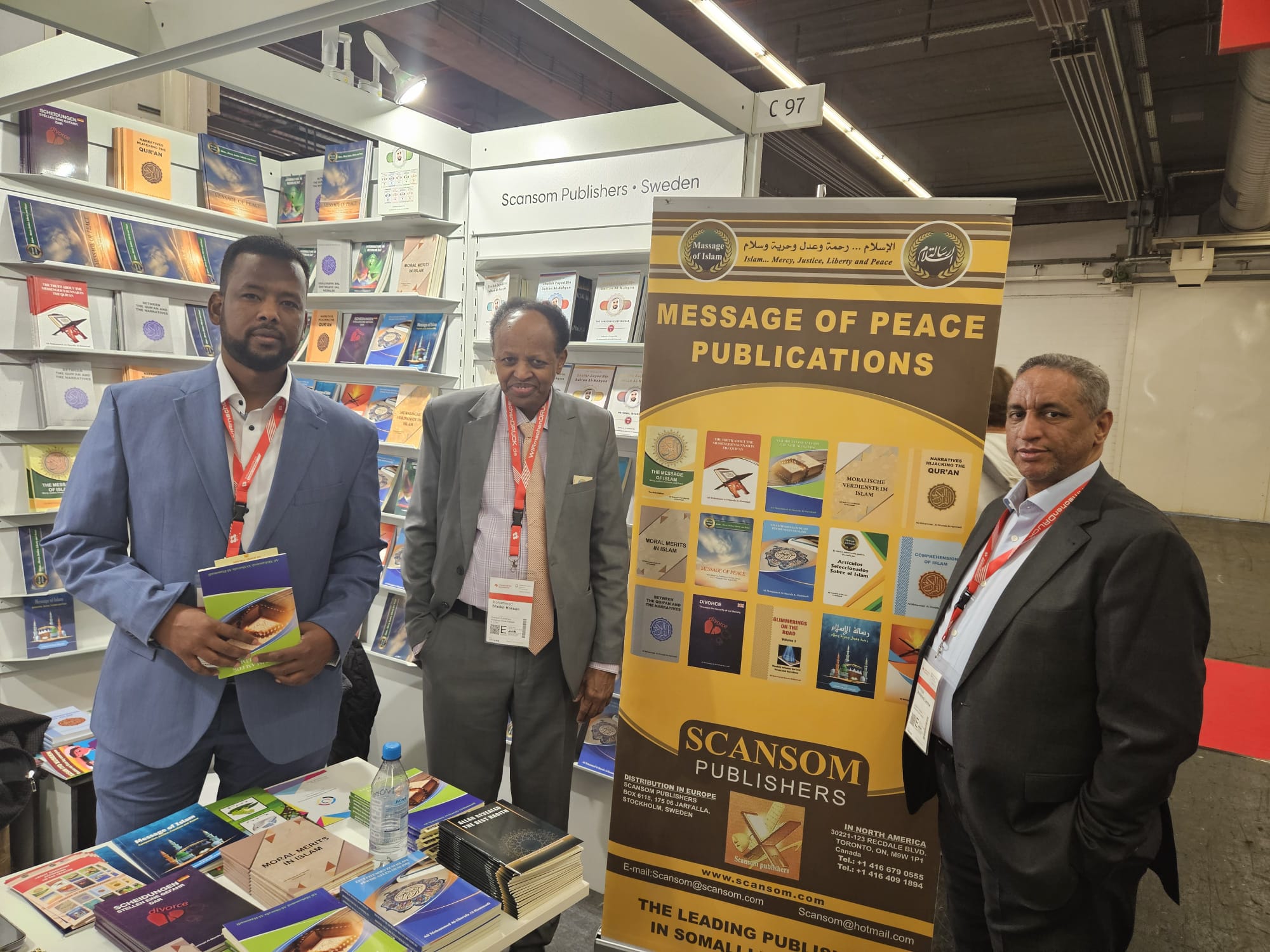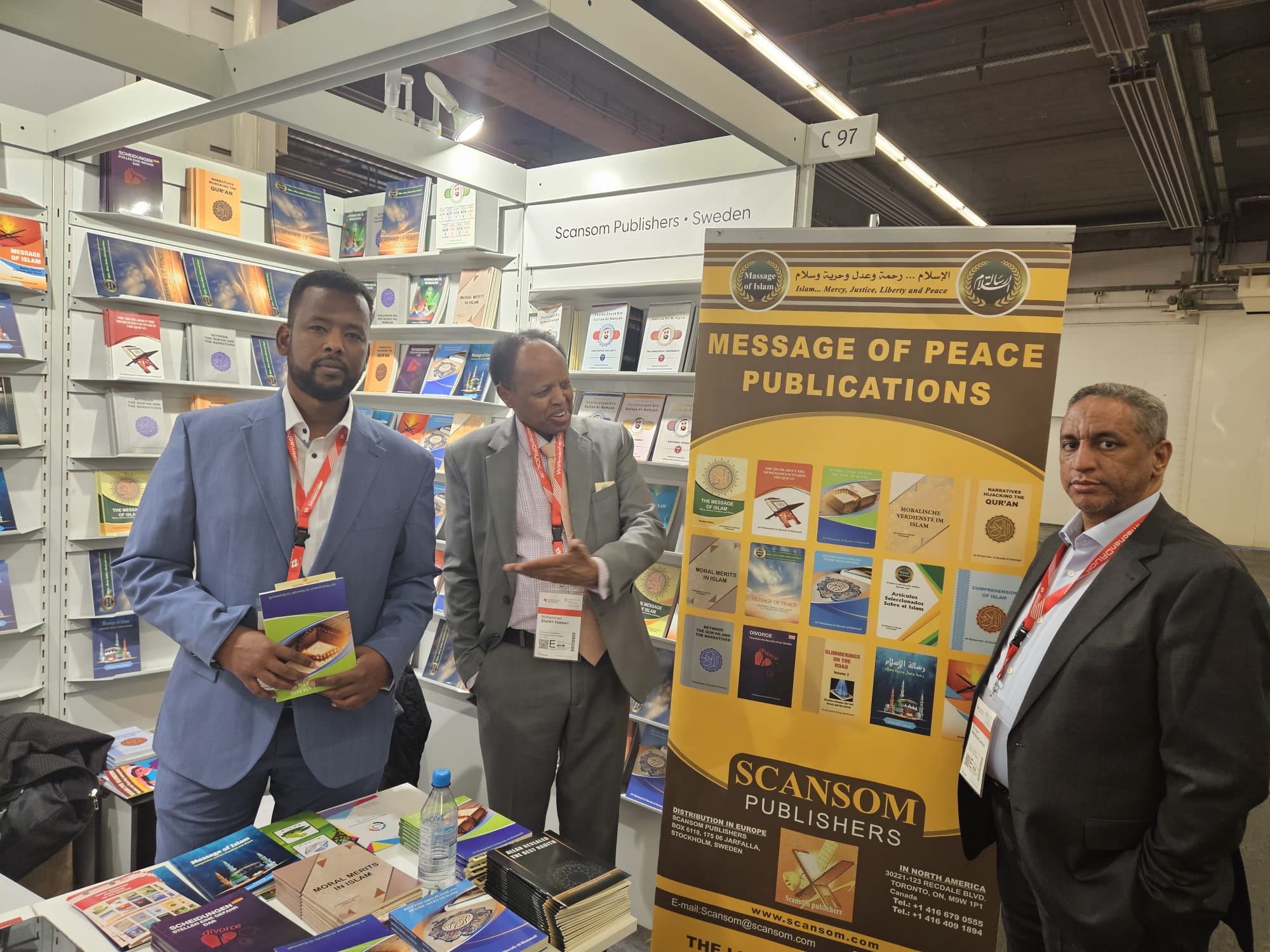 ويشهد الجناح إقبالا لافتا وقد قام الأستاذ محمد شيخ حسن ممثل مؤسسة رسالة السلام فى كندا والأستاذ الحاج محمد الامين.امين مؤسسة رسالة السلام فى أسبانيا بتوزيع وشرح كتب المفكر العربي الاستاذ على محمد الشرفاء للزائرين والتفاعل مع الزوار بالتعاون مع ممثلو مؤسسة رسالة السلام فى ألمانيا
