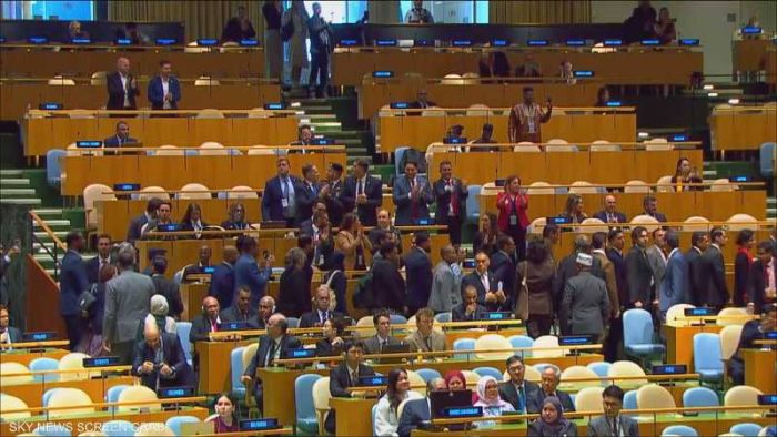 شهدت قاعة الجمعية العامة للأمم المتحدة، انسجاب وفود دولية من الجلسة أثناء إلقاء رئيس الوزراء الإسرائيلي بنيامين نتنياهو خطابه.