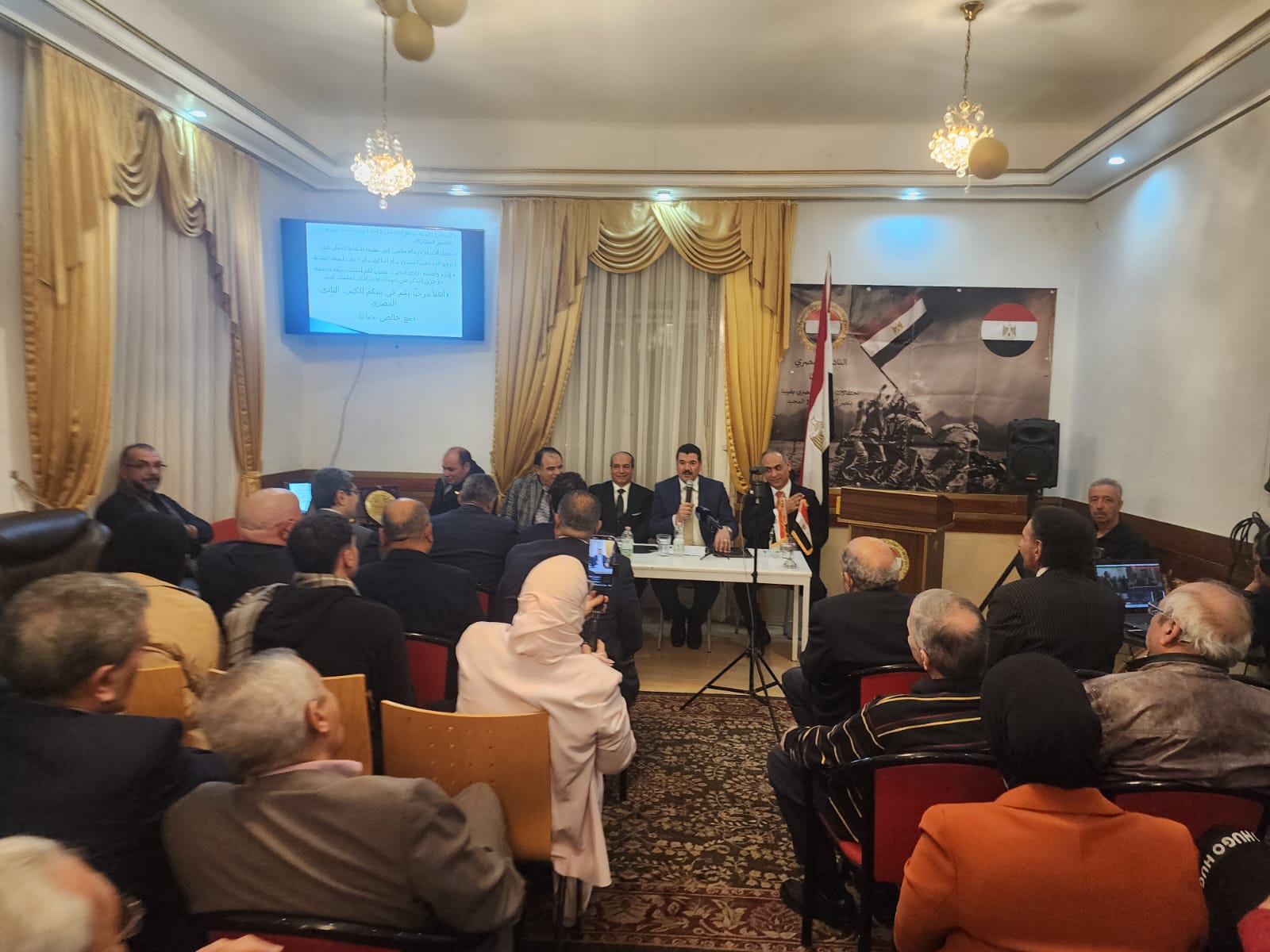 واحتضنت القاعة الرئيسية للنادي المصري الفعالية، التي اكتظت بالحضور، حيث استُهلت بكلمة ترحيبية ألقاها سكرتير النادي المهندس مجدي حنا، رحّب خلالها بالضيوف والمشاركين، مؤكدًا أهمية الدور الثقافي والفكري الذي يضطلع به النادي في ربط أبناء الجالية بقضايا الوطن.