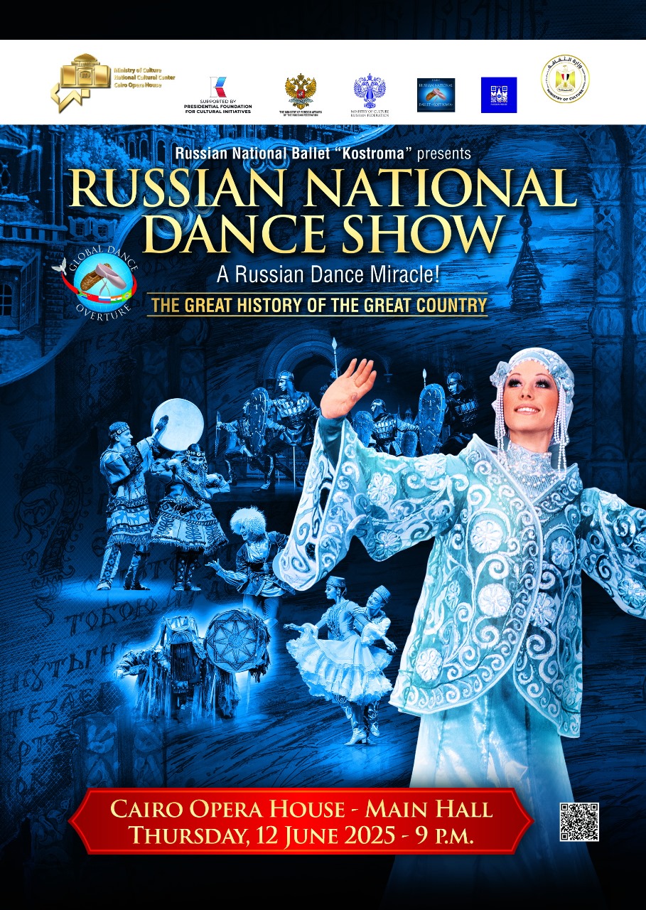 فعلى المسرح الكبير تحتفل فرقة الرقص الوطنى الروسى “كوستروما” بالعيد الوطنى بالتعاون مع السفارة الروسية وتقدم عروضًا ساحرة ومبهرة تعبر عن تاريخ وتراث روسيا العريق ويقدم أوركسترا القاهرة السيمفونى حفلين يحمل أحدهما عنوان عبق أمريكي ويقوده المايسترو نادر عباسي ومشاركة عازف التشيللو حسن معتز.