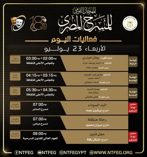 برنامج فعاليات الدورة الـ18 من المهرجان القومي للمسرح