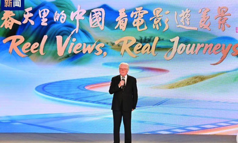 كرم الوزير الصيني شين هايشيونغ، رئيس مجموعة الصين للإعلام (CMG)، الفنان حسين فهمي، رئيس مهرجان القاهرة السينمائي الدولي، خلال فعاليات “كرنفال ثقافة السينما في دلتا نهر يانغتسي 2026” المنعقد في مدينة نينغبو بمقاطعة تشجيانغ في جمهورية الصين، والتي ينظمها مجموعة الصين للإعلام بالتعاون مع لجنة الحزب بمقاطعة تشجيانغ.