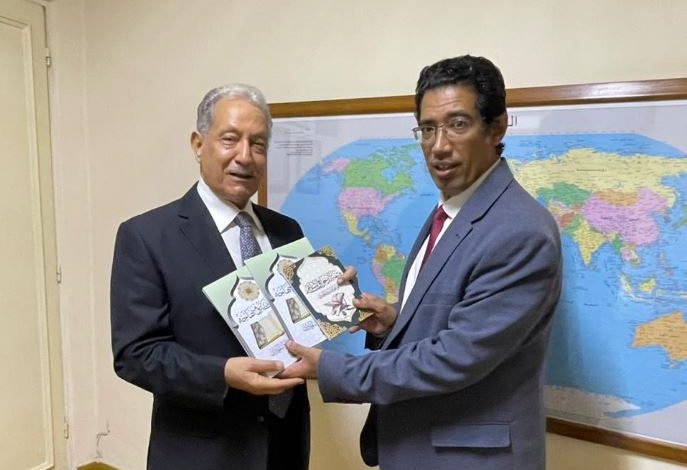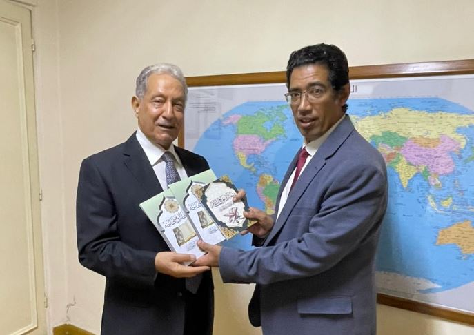 بتسليم مجموعة من مؤلفات المفكر العربي الاستاذ على محمد الشرفاء الحمادي إلى السفير صلاح حليمة، مساعد وزير الخارجية الأسبق للشئون الإفريقية، ونائب رئيس المجلس المصري للشؤون الخارجية، ونائب رئيس مبادرة إسناد السودانيين المتأثرين بالحرب.