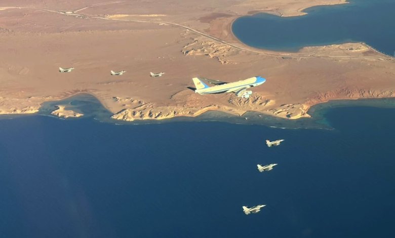 رسالة قائد السرب المصرى إلى طائرة ترامب بسماء شرم الشيخ: نرحب بكم في المجال الجوي لمصر