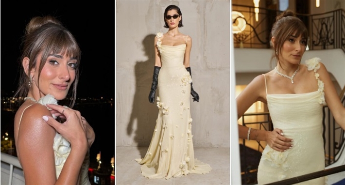 بينما اختارت أمينة فستانًا أنيقًا بلون أصفر باستيل هادئ، يتميز بتصميم راقٍ مزين بزهور ناعمة من نفس لون القماش، في لمسة فنية تعكس روح الربيع وتعزز من نعومة الإطلالة.