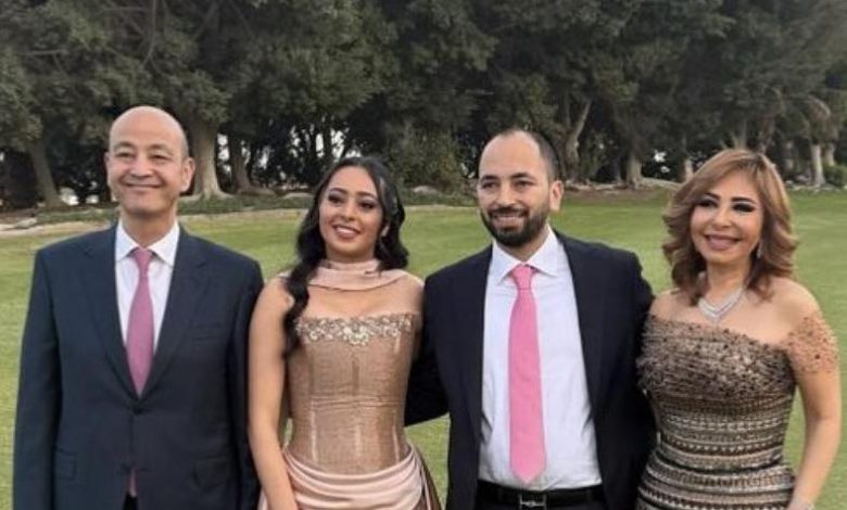 عمرو أديب ولميس الحديدي يظهران معا في حفل خطوبة نجلهما