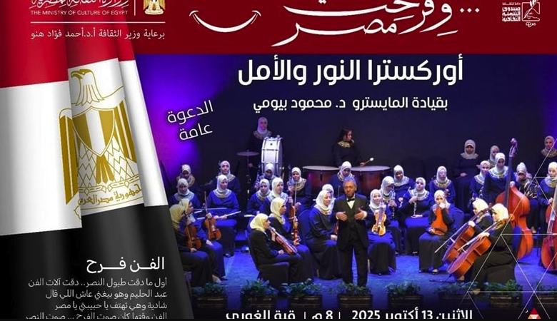 ويأتي الحفل ضمن برنامج الصندوق للاحتفاء بروائع الموسيقى المصرية والعالمية وتأكيد دور الثقافة في دعم ذوي القدرات الخاصة، إذ تُعد أوركسترا النور والأمل نموذجًا فريدًا على مستوى العالم، كونها تضم فتيات كفيفات استطعن تحقيق إنجاز فني وإنساني كبير عبر مسيرة تمتد لأكثر من نصف قرن، قدمن خلالها عروضًا في أهم المسارح الدولية وحصلن على إشادات واسعة من النقاد والجماهير.