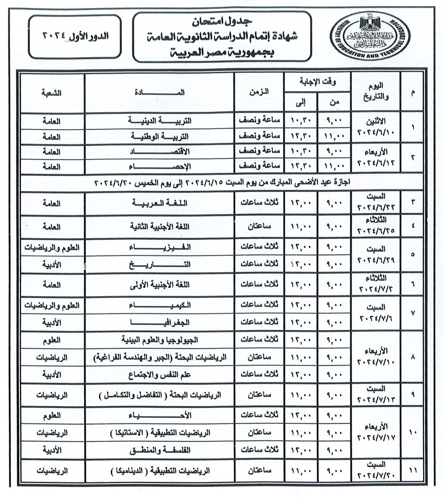امتحانات الثانوية العامة 2024