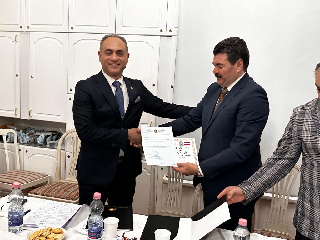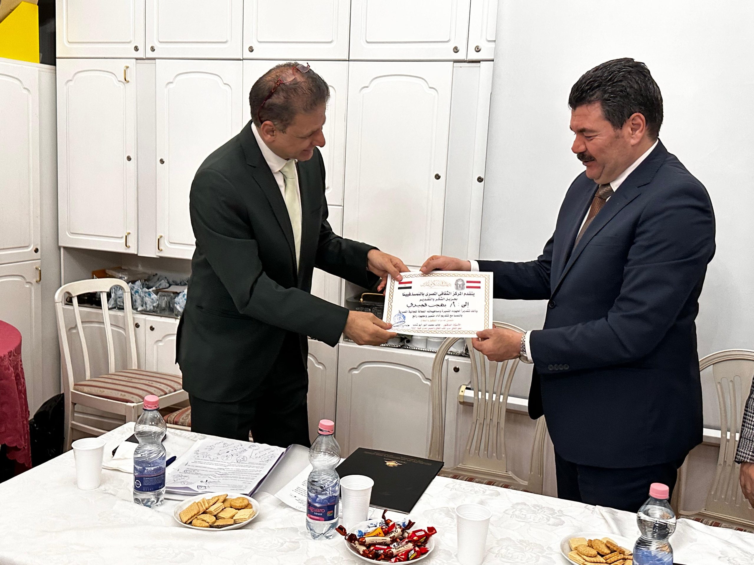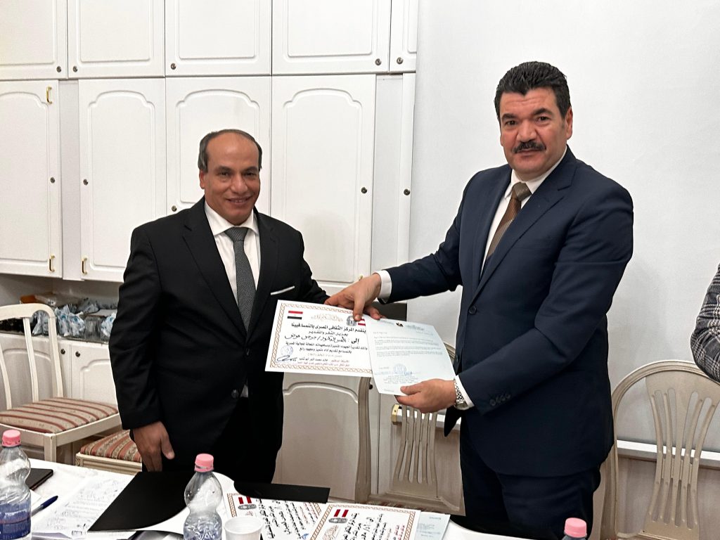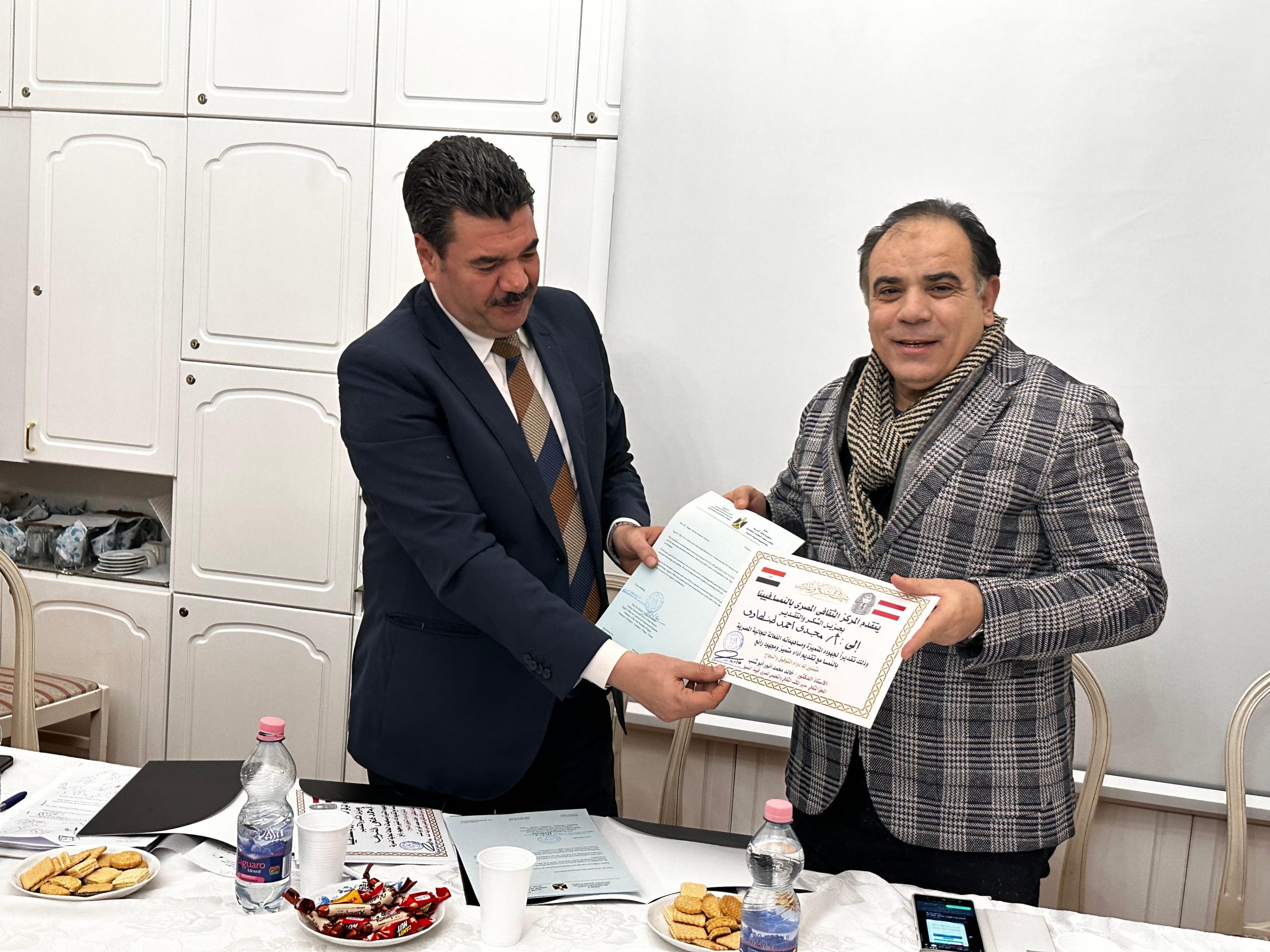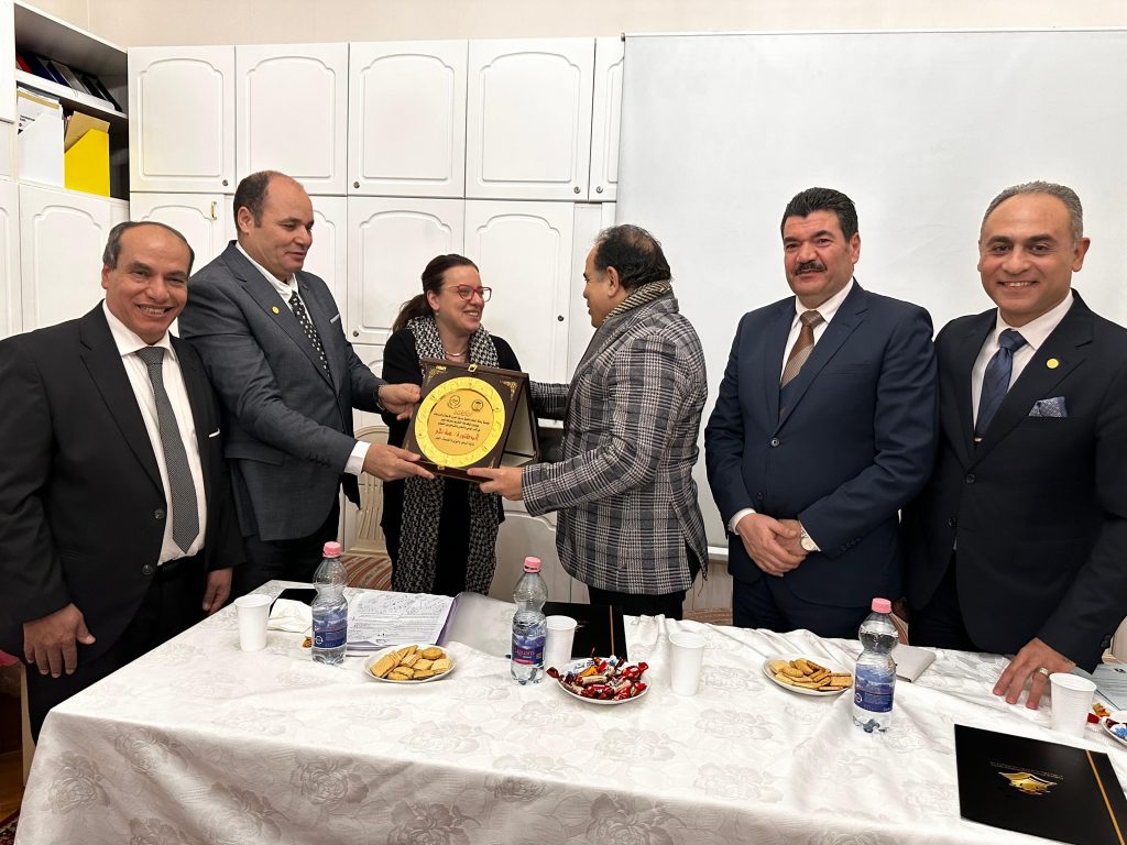 وفي المقابل، قام الأستاذ الدكتور خالد أبو شنب بتقديم شهادات تقدير صادرة عن المكتب الثقافي المصري لوفد مؤسسة رسالة السلام العالمية، تكريما لدورهم الفكري والتنويري، حيث شمل التكريم كلًا من: