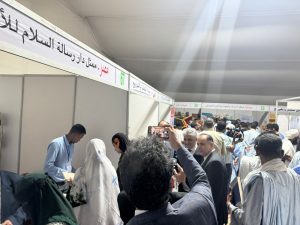 يواصل وفد مؤسسة رسالة السلام أنشطته المكثفة فى معرض نواكشوط الدولى للكتاب وقد زار الوفد جناح مؤسسة رسالة السلام بالمعرض حيث يشهد الجناح اهتماما لافتا من الوزراء وكبار الناشرين قبل افتتاح المعرض للجمهور بدءا من غد