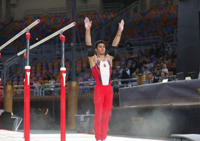 وزير الرياضة يهنئ محمد عفيفي بفضية المتوازي في كأس العالم للجمباز الفني بالقاهرة