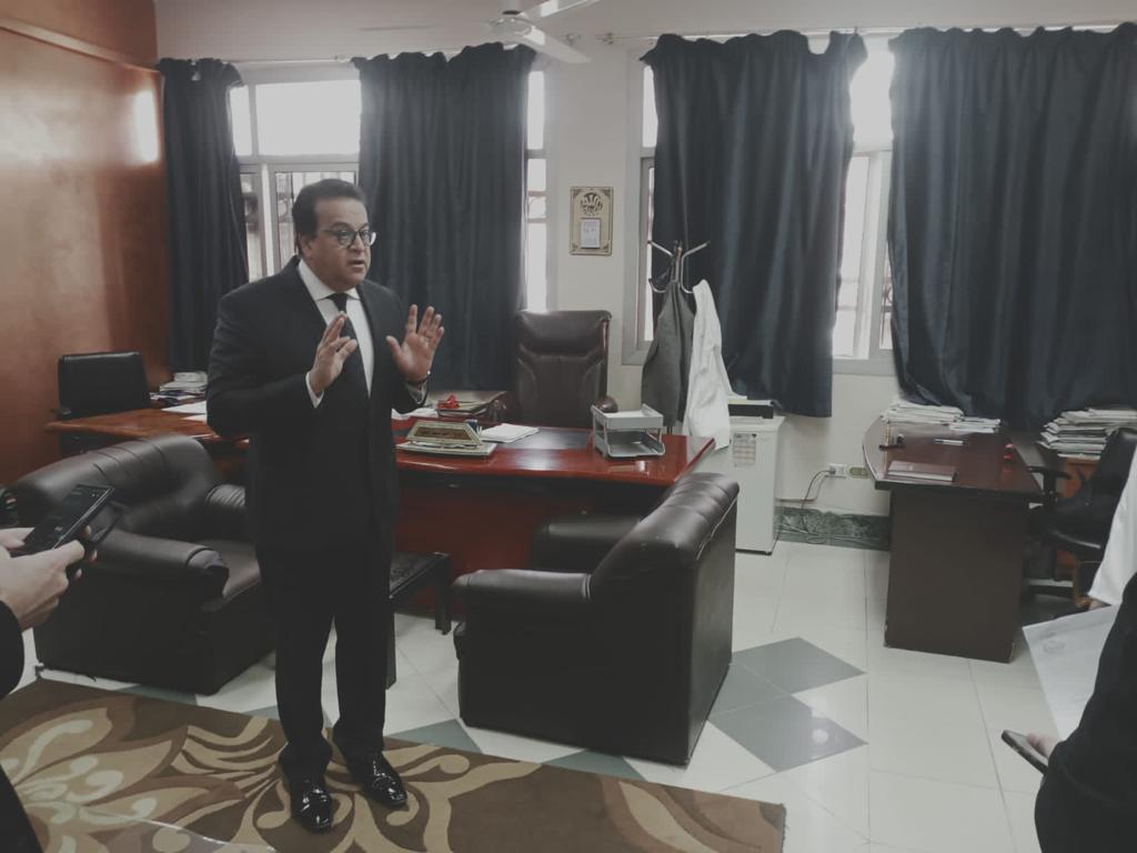 وتابع عبدالغفار أن الوزير انتقد مستوى النظافة في المستشفى، وعدم قيام شركة النظافة المتعاقد معها بالدور المنوط بها، كما لاحظ الوزير عدم انتظام وتغيب أفراد شركة الأمن المتعاقد معها وفقاً لجدول النوبتجية، حيث أن العدد الكامل لأفراد الأمن (60) فردا خلال الـ 24 ساعة، مما يعني أن عدد الأفراد في النوبتجية الواحدة 30 فردا، علاوة على عدم التزام أفراد الأمن بارتداء الزي الرسمي الخاص بهم.