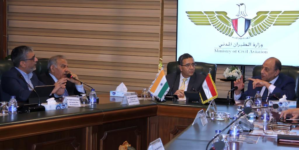 وفى بداية اللقاء رحب وزير الطيران المدني بالسفير الهندي والوفد المرافق له مؤكدًا على عمق العلاقات التاريخية والتجارية بين الجانبين، مشيرًا إلى حرص الوزارة على التعاون مع الجانب الهندي في مجال تقديم الاستشارات المتعلقة بالمطارات وتكنولوجيا المعلومات، وخلال اللقاء استعرض الجانبان تشجيع الحركة الجوية والسياحية الوافدة الى المدن المصرية خاصة وأنه من المقرر أن تقوم شركة مصر للطيران بتشغيل خط جديد الى مدينة نيودلهى بالهند بواقع 4 رحلات أسبوعيا اعتبارًا من شهر يوليو القادم، بجانب رحلاتها المنتظمة الى مدينة مومباي.