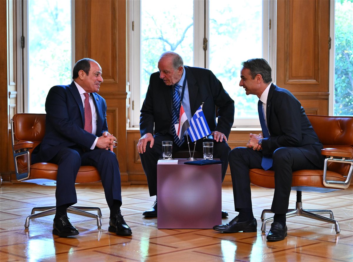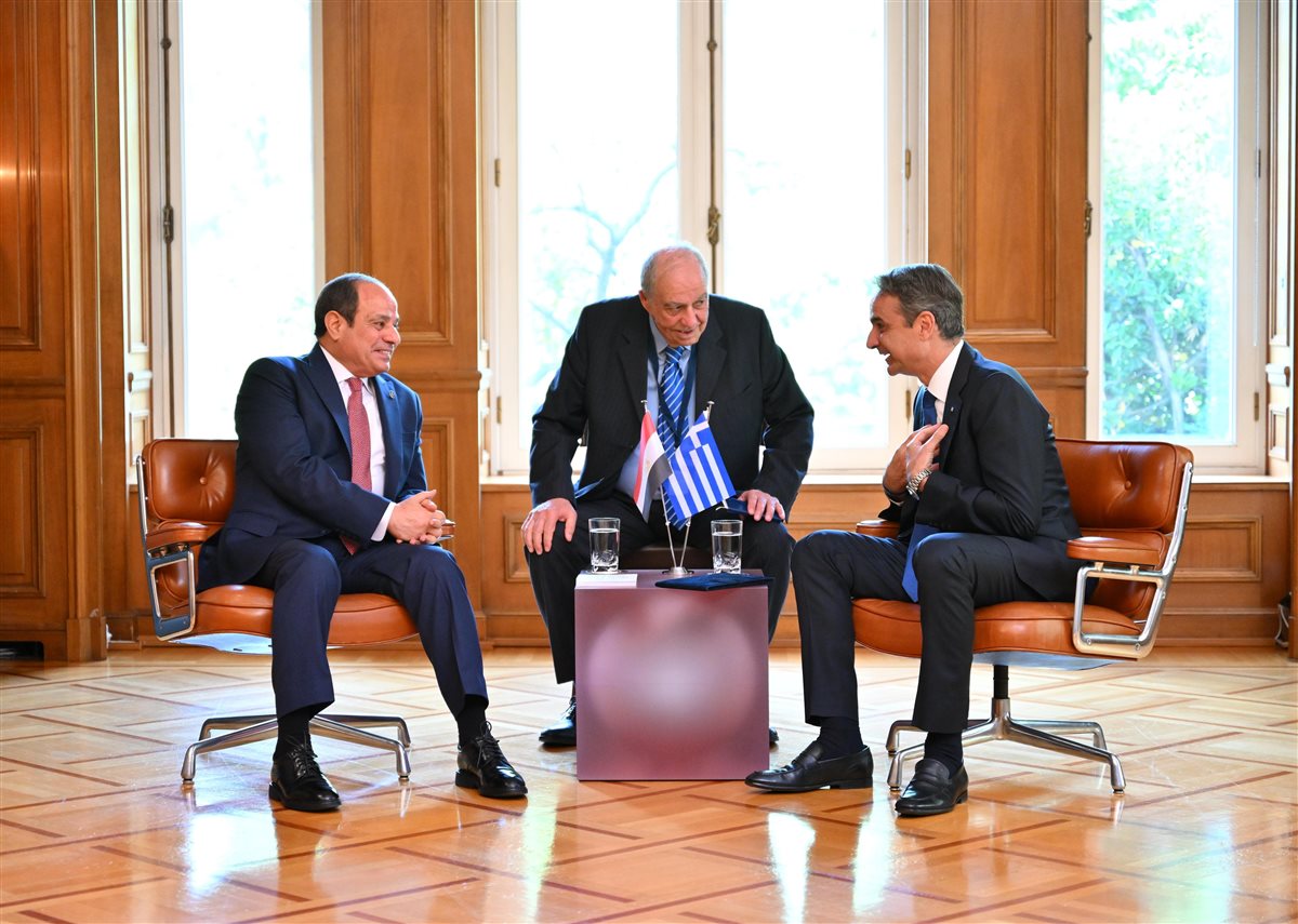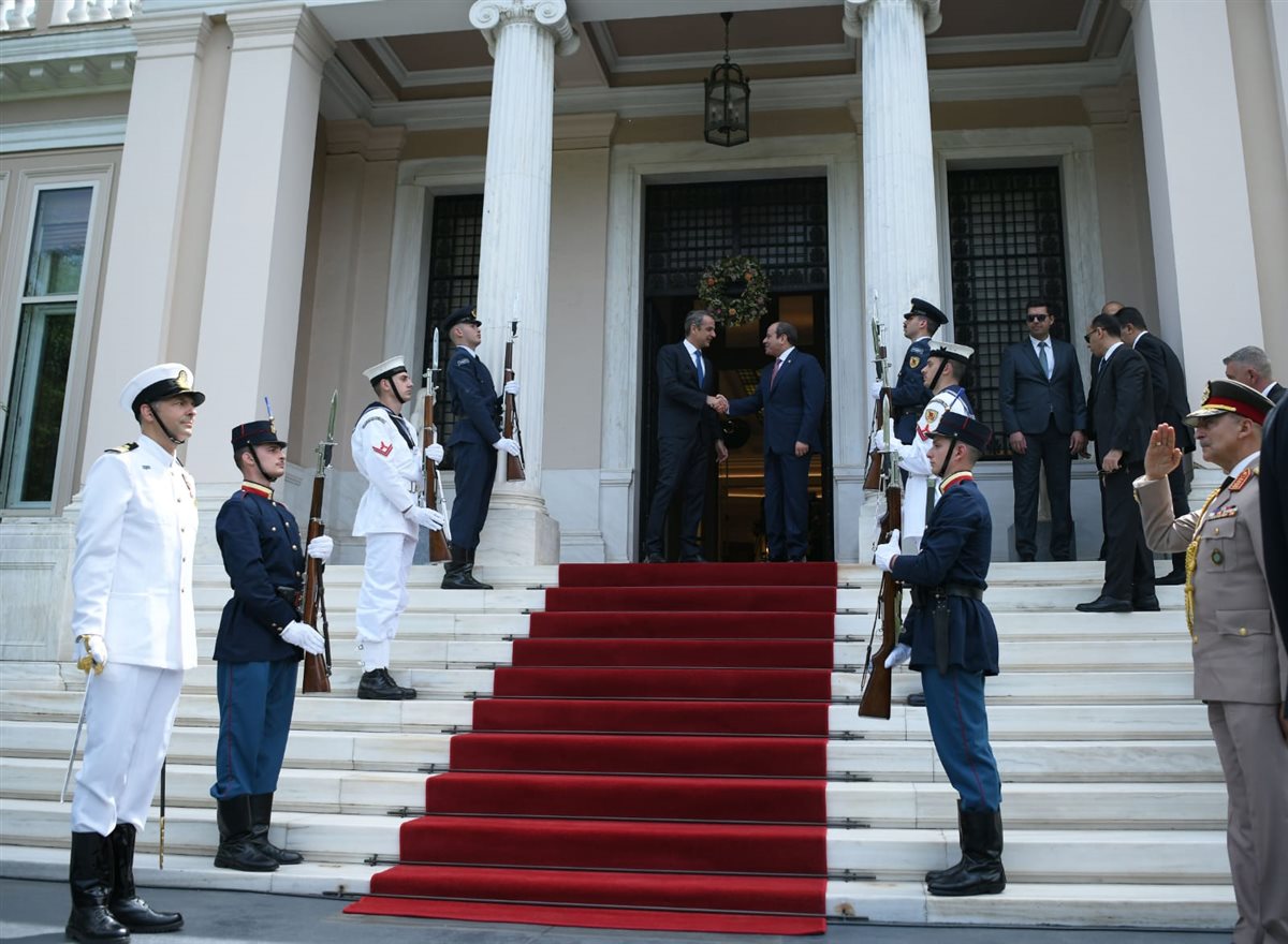 استقبل رئيس الوزراء اليوناني كيرياكوس ميتسوتاكيس، الرئيس عبد الفتاح السيسي في مقر رئاسة الوزراء اليونانية لبحث تعزيز العلاقات في مختلف المجالات.