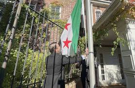 رفع العلم السوري على مبنى سفارة سوريا في واشنطن